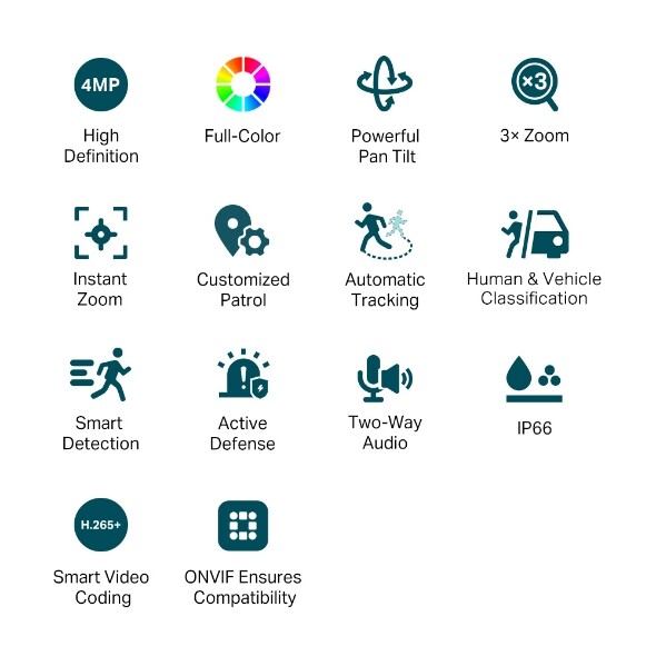 VIGI 4MP Outdoor Full-Color Dual-Lens Varifocal Pan Tilt Network Camera